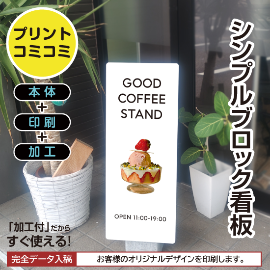 【印刷込み】屋外 片面 シンプルブロック看板【300×750】 スタンド看板 BLOCK SIGN 店舗看板 プレート看板 プリントコミコミセット